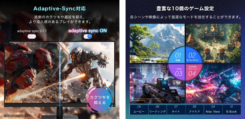 Adaptive-Syncと10個のゲーム設定で没入感アップ