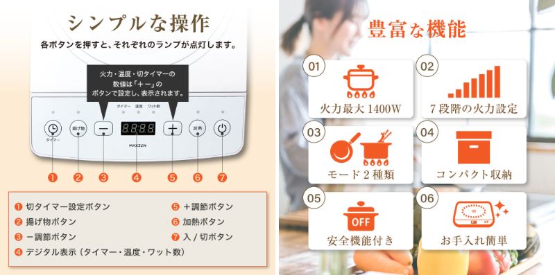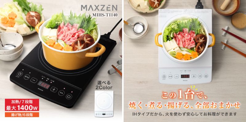 7段階火力や温度を効率的に保つうず電流方式などの機能搭載、かんたん操作で揚げ物から鍋料理までこなすIHクッキングヒーターを、ジェネリック家電ブランド「MAXZEN」より2025年10月3日から発売