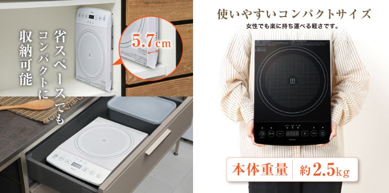 操作はシンプルながら、機能は豊富でうず電流や6段階の火力設定で多彩な調理法を実現、料理の幅を広げ、食卓を豊かに彩ります。