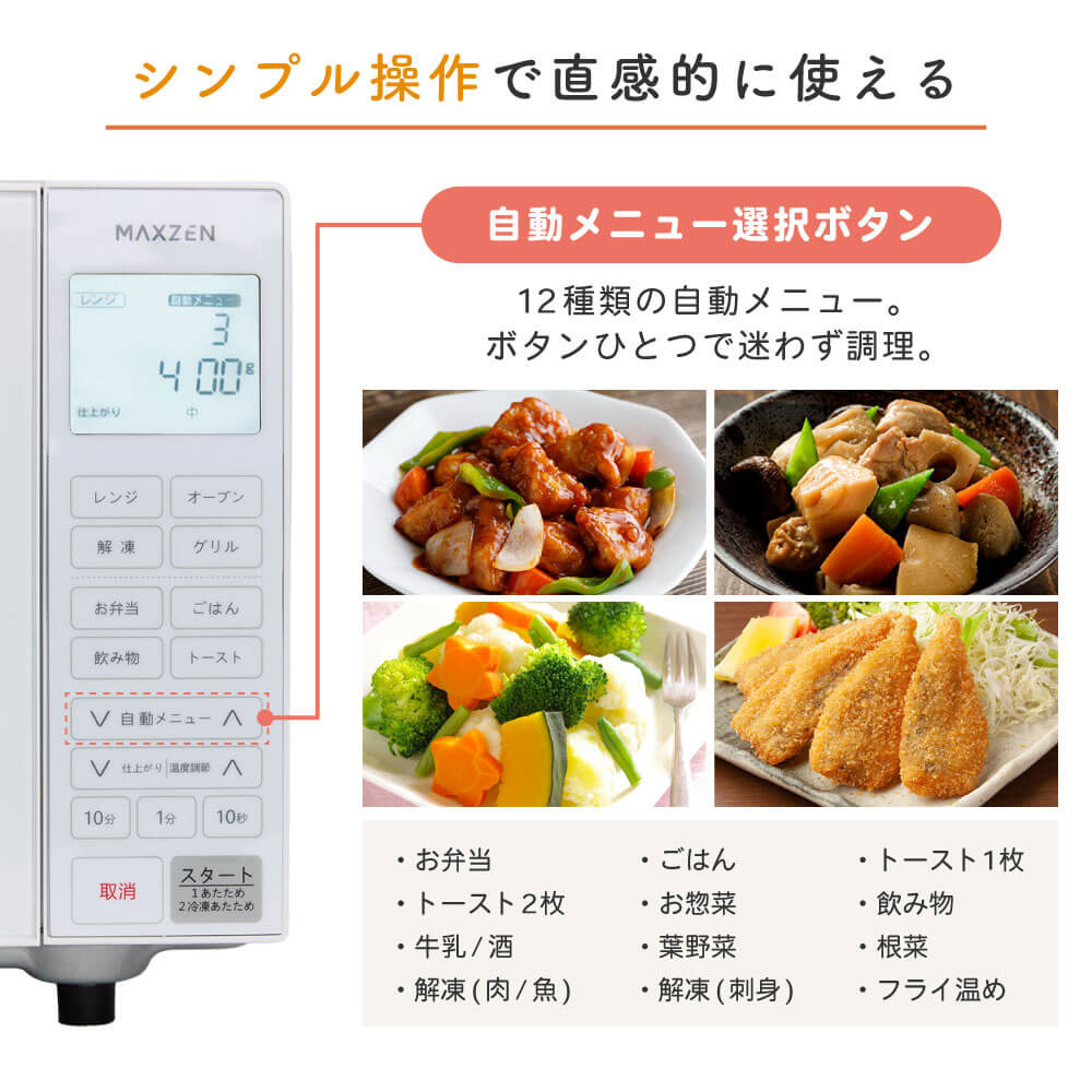 多彩な調理を叶える全12種類の自動メニューと一台3役の機能を搭載。コンパクト設計で省スペースに設置でき、ひとり暮らしの方におすすめのオーブンレンジを紹介いたします。