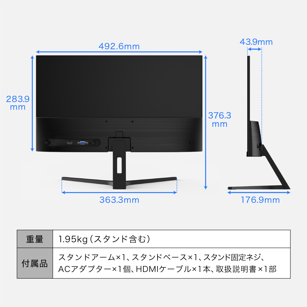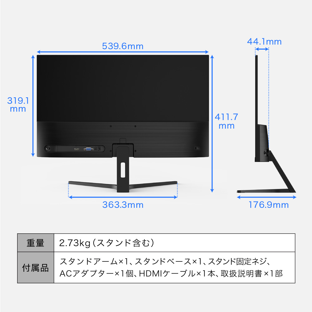映像のカクつきを抑えるAdaptive-Sync機能を搭載し、壁掛けやアーム取り付けが可能なVESAマウント対応で省スペースに使いやすいPCモニターをお届けします。