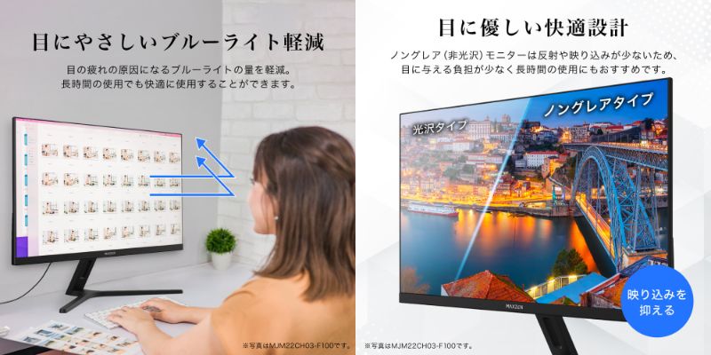 ※搭載しているパネルはMJM22CH03-F100がVAパネル、MJM24CH02-F100とMJM27CH02-F100がIPSパネルとなっております。