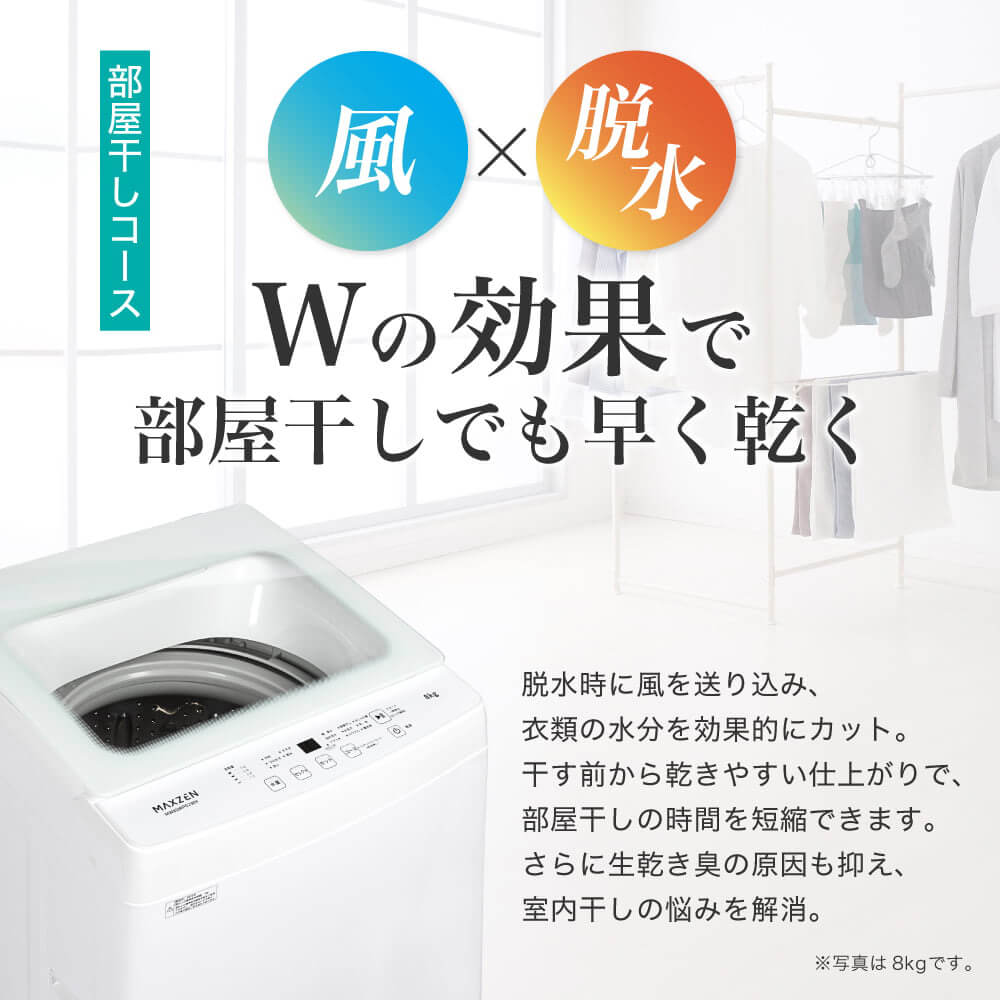 脱水時の風の送りこみで、部屋干しでも早く乾く仕上がりに