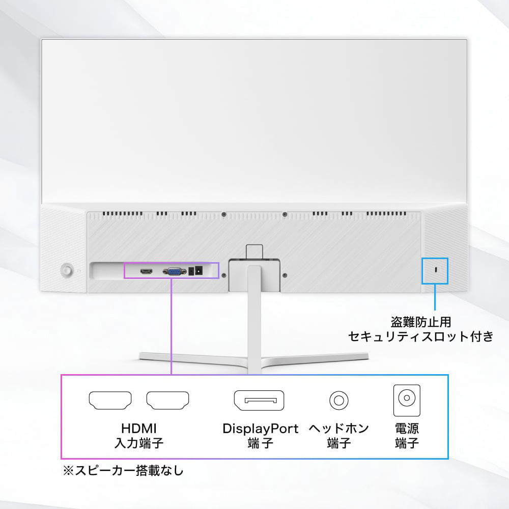 ホワイトで統一された、美しくおしゃれで長時間のプレイにも配慮したゲーミングモニターをお届けします。