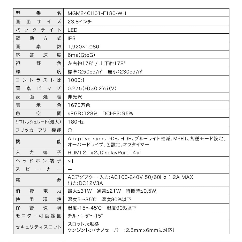 ジェネリック家電ブランド「MAXZEN」を展開するマクスゼン株式会社(本社:東京都江東区、代表取締役社長:清水敏光)は、ゲーミングモニター(MGM24CH01-F180-WH)を、2025年12月25日より発売します。