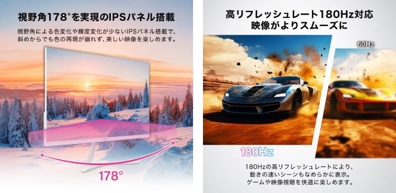 鮮やかな映像をサポートする視野角178°IPSパネル&リフレッシュレート180Hz