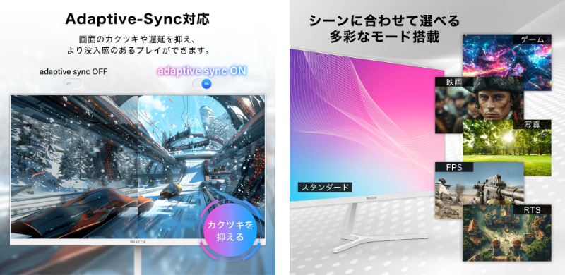 より深くゲームに没入させるAdaptive-Syncと多彩なモード
