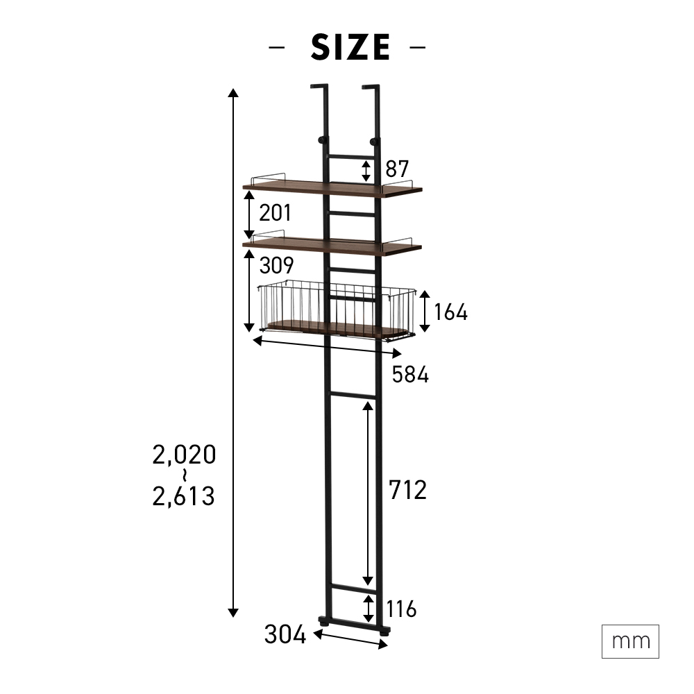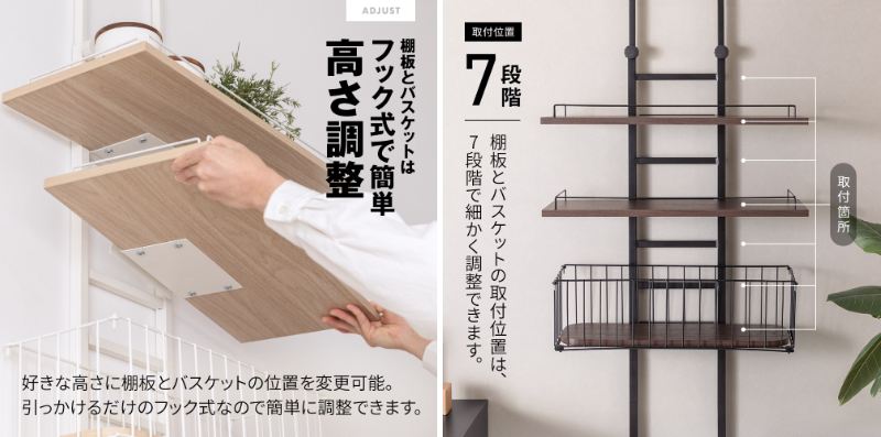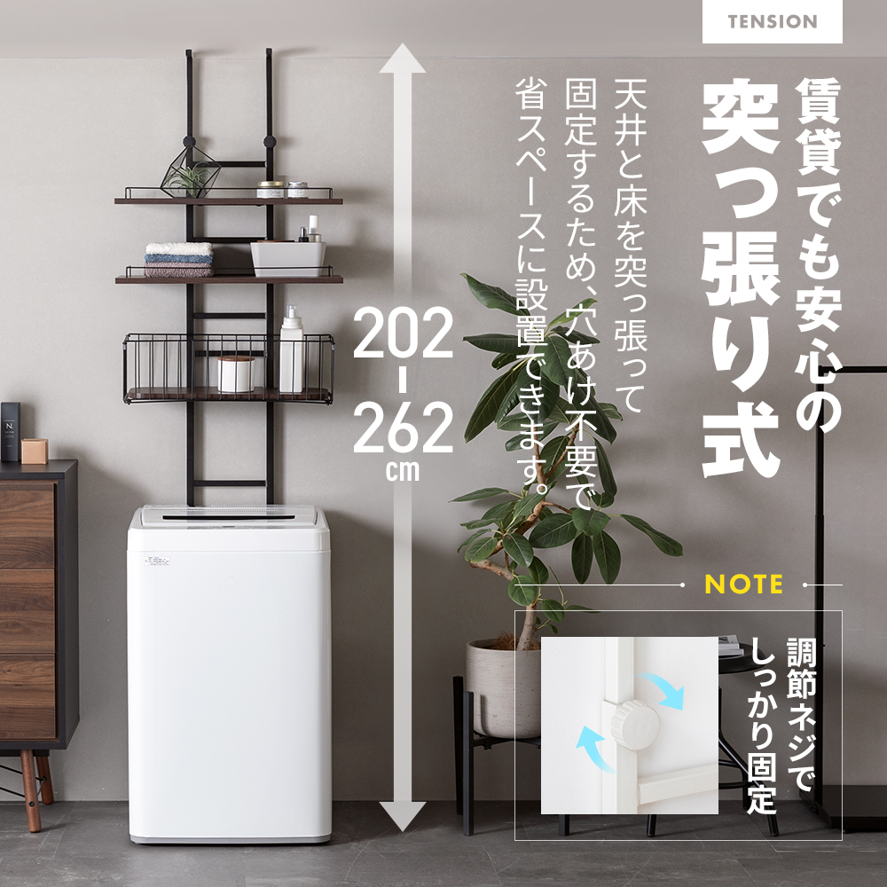 高さは穴あけ不要の突っ張り式で202-262cmに調整可能