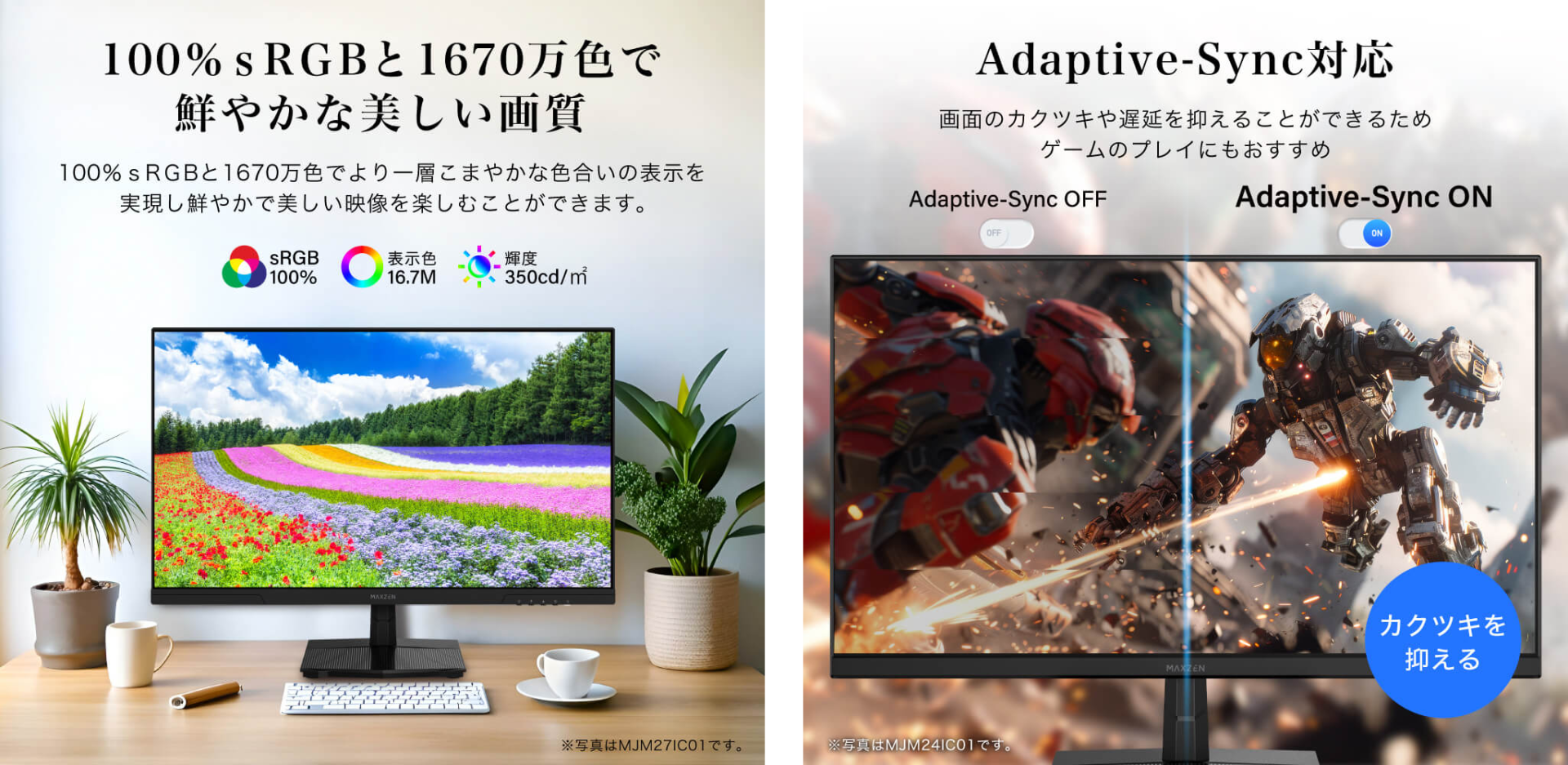 美しい映像体験を支える100%sRGB&1670万色にAdaptive-Sync対応