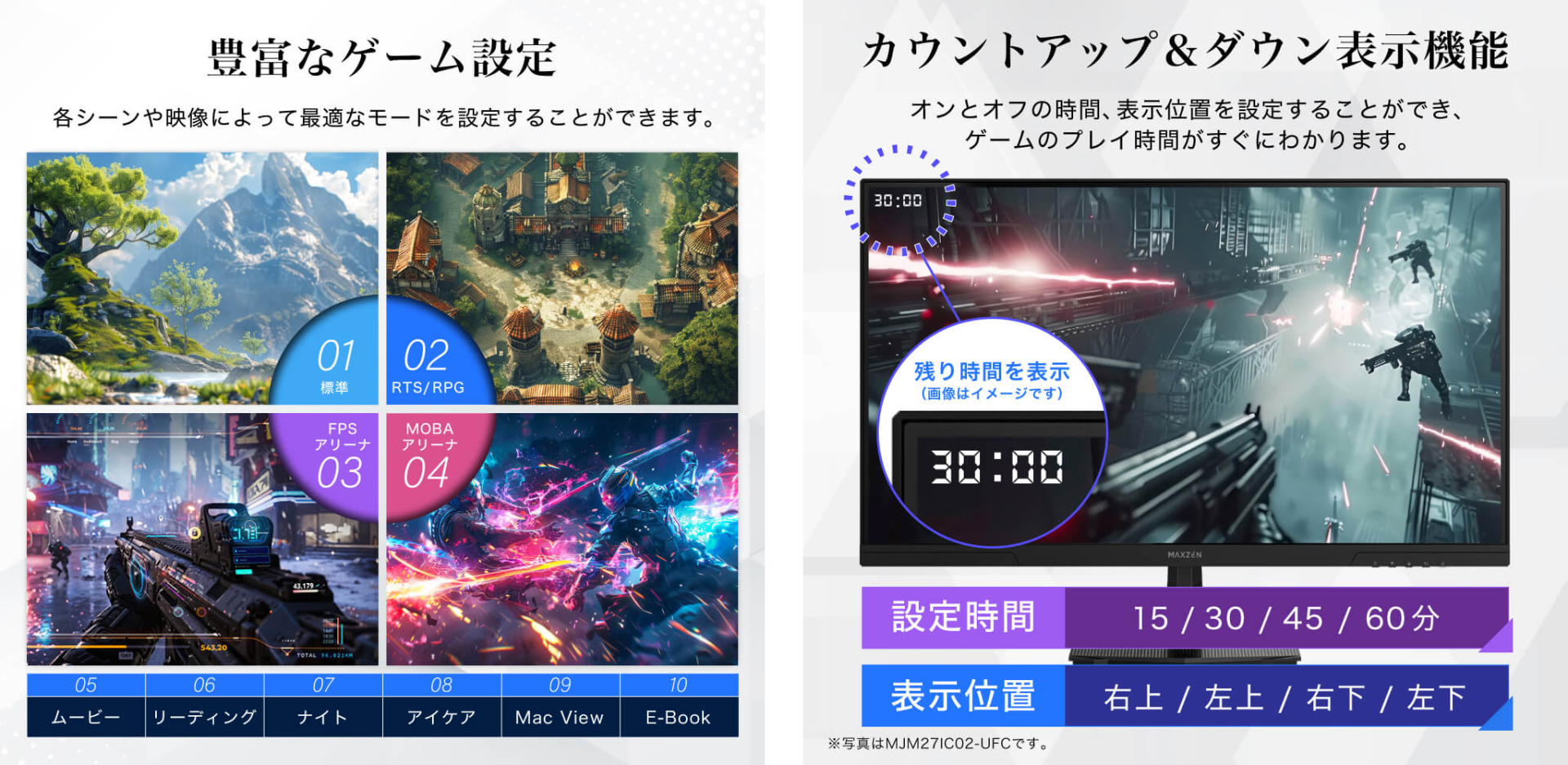10種類のゲーム設定とカウントアップ&ダウン表示機能でお好みのプレイ環境へ